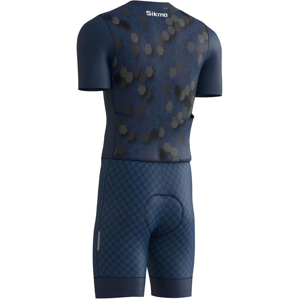 Men’s Cycling Navy Skinsuit – Padded One Piece Trisuit for Speed, Comfort & Performance