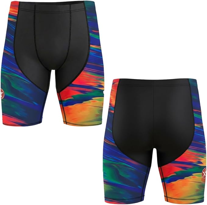 Designed for serious swimmers, these men’s swim jammers combine performance, comfort, and durability. The streamlined compression fit enhances hydrodynamics, helping reduce water resistance for improved speed and endurance in both pool and open water. Featuring a full front and back liner, these swim shorts provide extra coverage and support, eliminating transparency and ensuring comfort during extended swim sessions. The inner lining is soft against the skin and prevents chafing. The elastic waistband with an adjustable internal drawstring allows for a secure, personalized fit, keeping the jammers firmly in place during dives and turns. Anti-slip silicone hem grips at the leg openings prevent riding up, maintaining a smooth and professional look. Crafted from high-quality, quick-dry, chlorine-resistant stretch fabric, these swim jammers are built to withstand regular training while retaining their shape and elasticity. Perfect for competitive swimmers, swim teams, triathletes, fitness swimmers, and beach workouts. Train harder. Swim faster. Perform better.