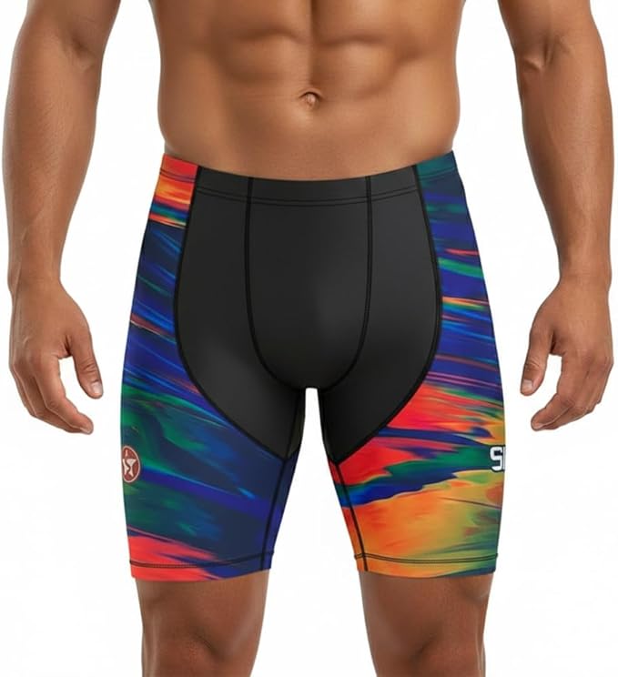 Sikma Men’s Swim Jammers with Front & Back Liner, Drawstring Waist & Silicone Leg Grip – Quick Dry Compression Swim Shorts for Training & Racing