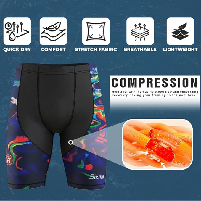 Sikma Men’s Swim Jammers with Front & Back Liner, Drawstring Waist & Silicone Leg Grip – Quick Dry Compression Swim Shorts for Training & Racing (Copy)