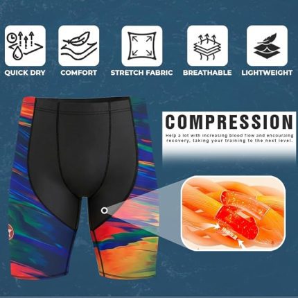 Sikma Men’s Swim Jammers with Front & Back Liner, Drawstring Waist & Silicone Leg Grip – Quick Dry Compression Swim Shorts for Training & Racing (Copy)